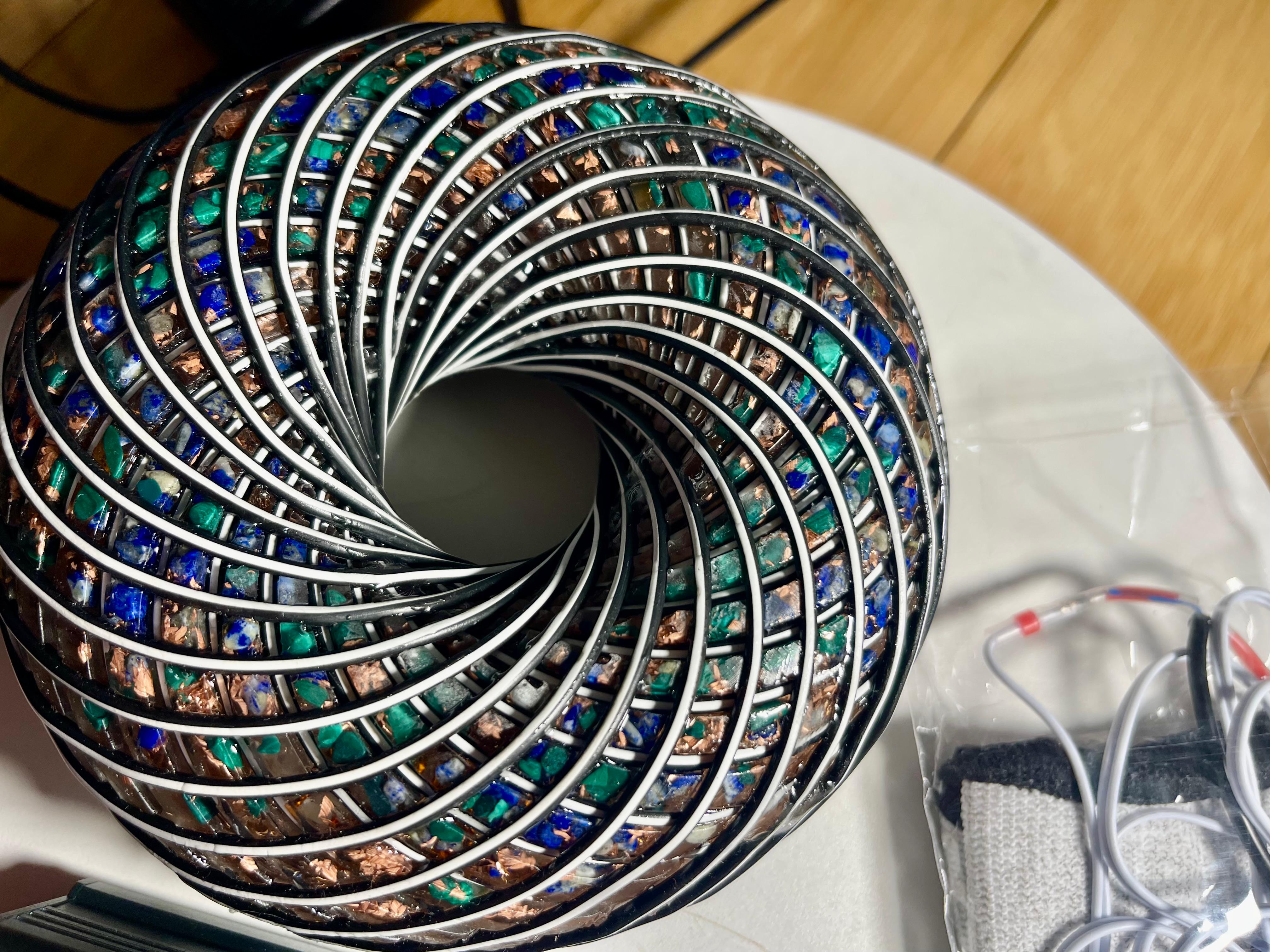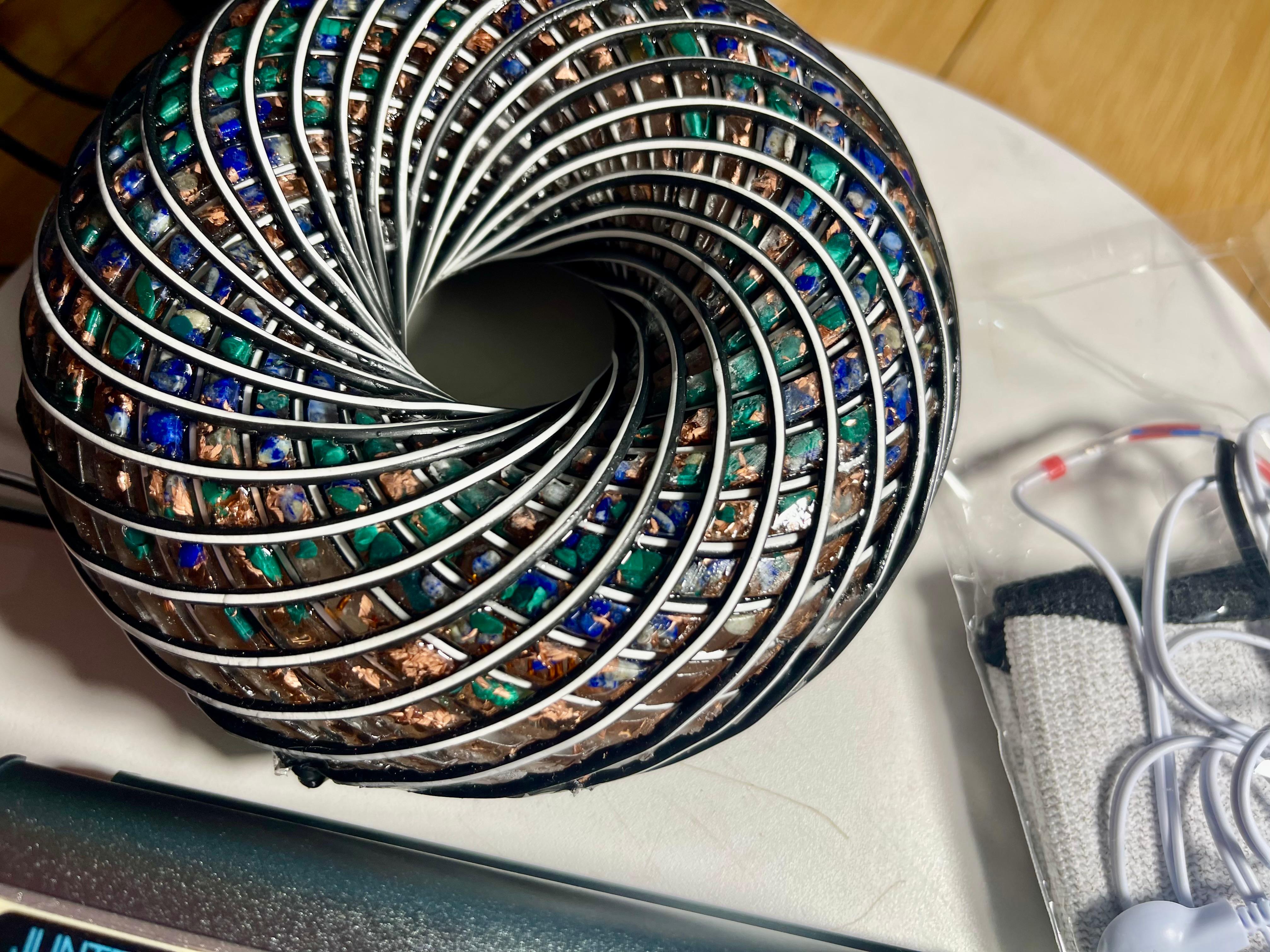Fiecare bobină toroidală de 15 cm este realizată manual, cu o precizie care respectă proporțiile sacre ale fluxului toroidal: forma prin care energia circulă continuu, fără pierderi.