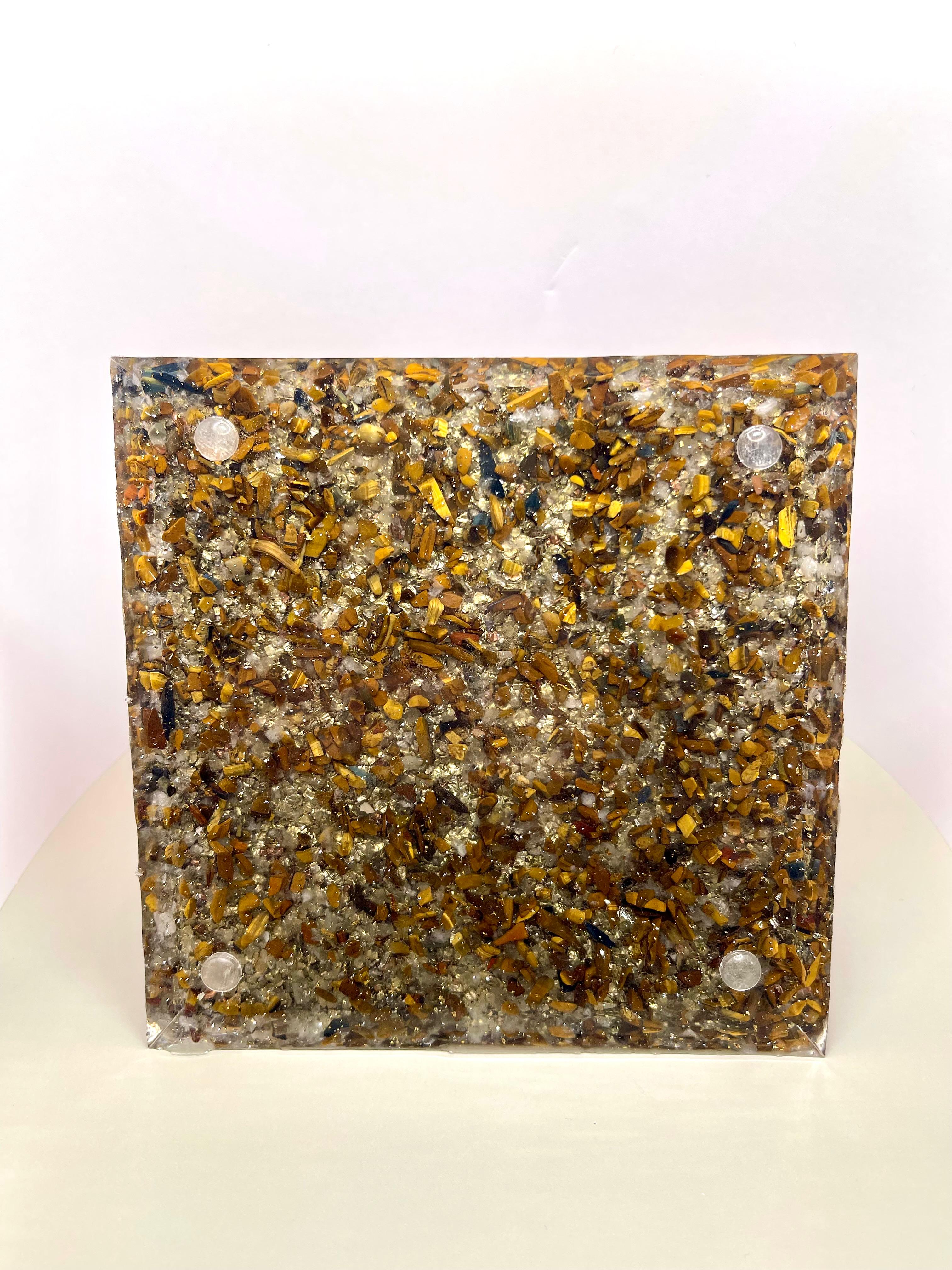 Această creație conține foiță de aur și foiță de argint, spirale energetice din cupru și o selecție atent aleasă de cristale naturale: cuart fumuriu, cuart transparent, hematit, piatra Sânge de Dragon, apatit albastru, amazonit, ochi de tigru, opal, ametist, labradorit, fluorit și cuart trandafiriu. Împreună, aceste elemente creează o structură coerentă care amplifică fluxul energetic, stabilizează câmpul subtil și susține armonizarea profundă a spațiului și a ființei.