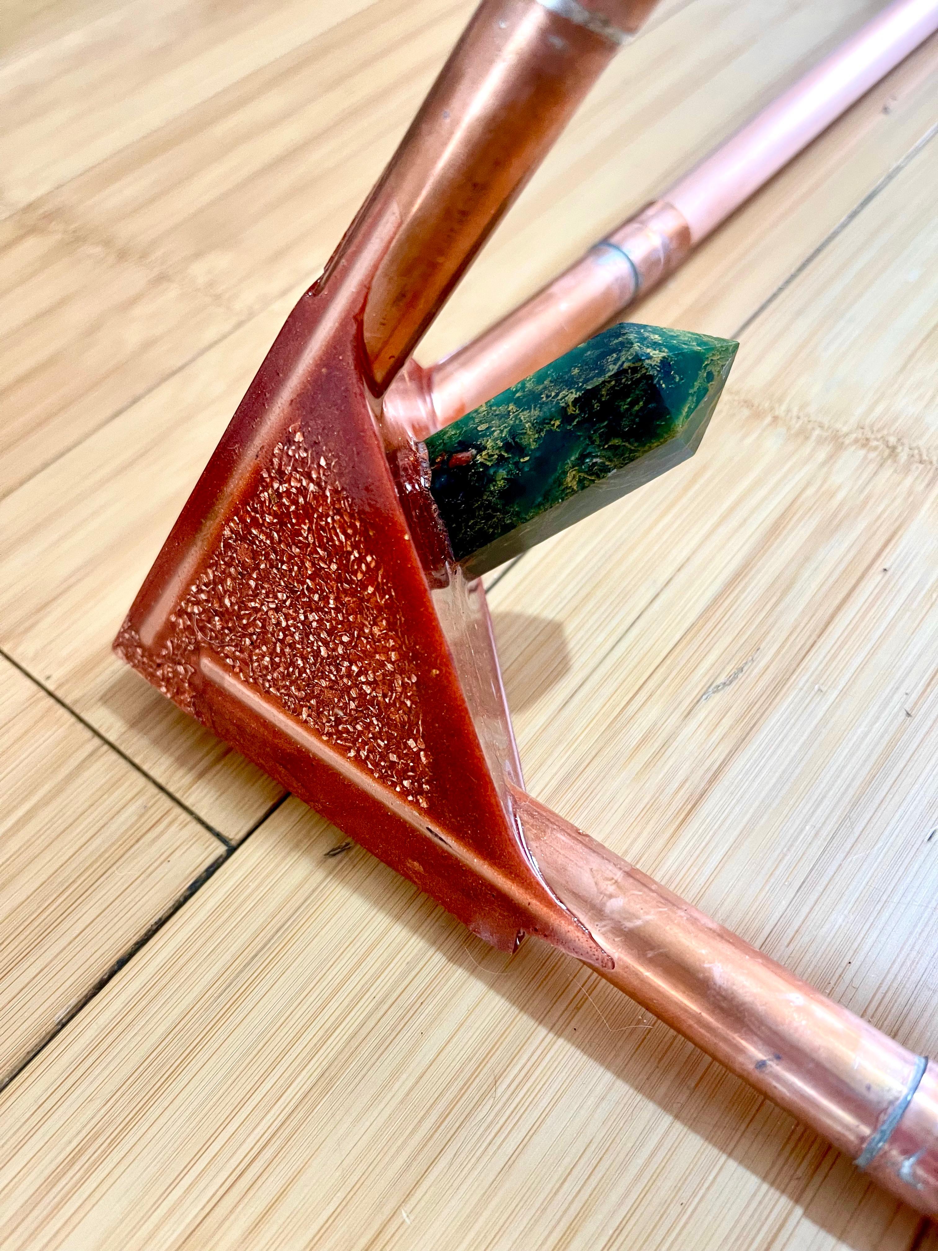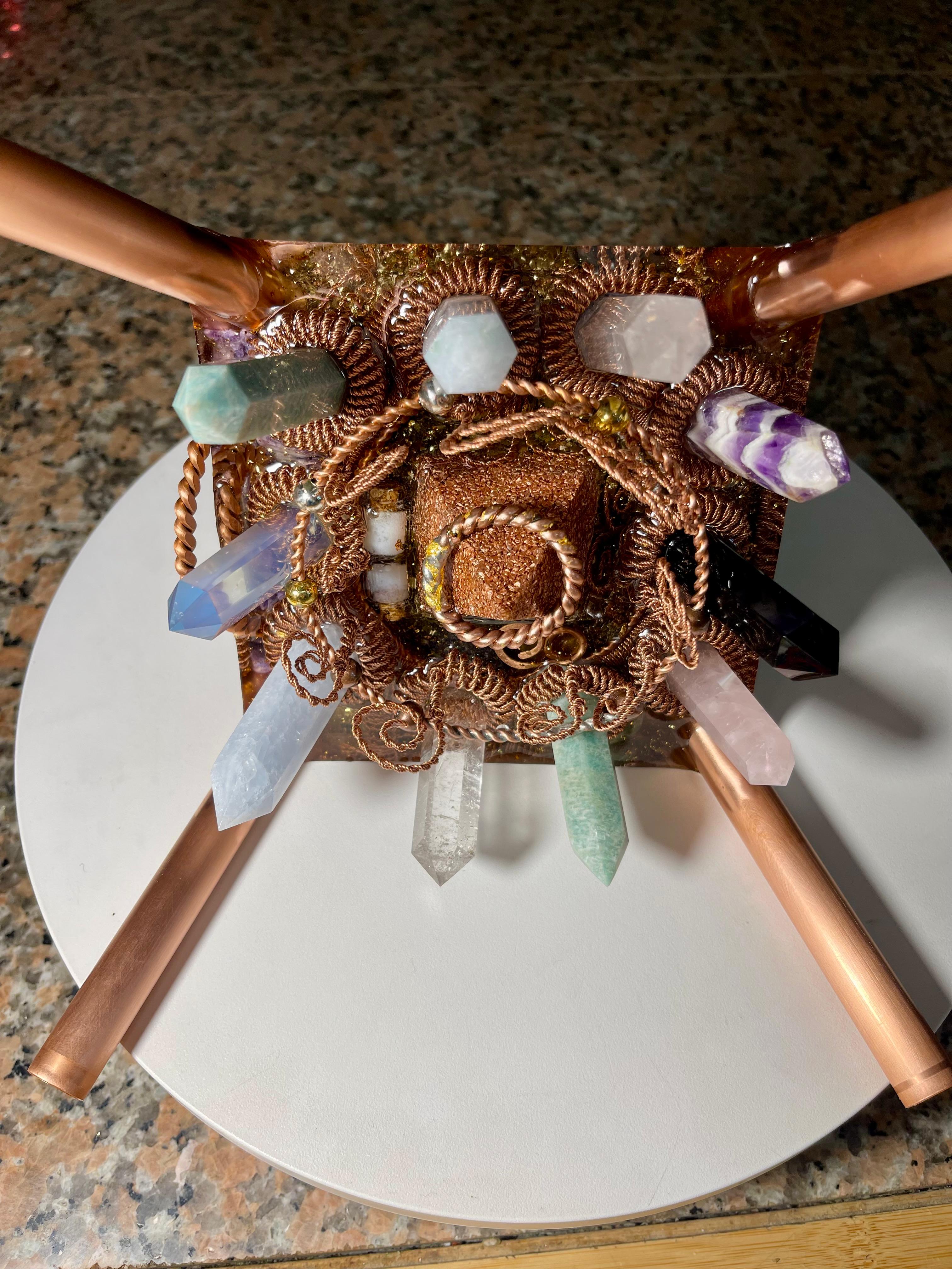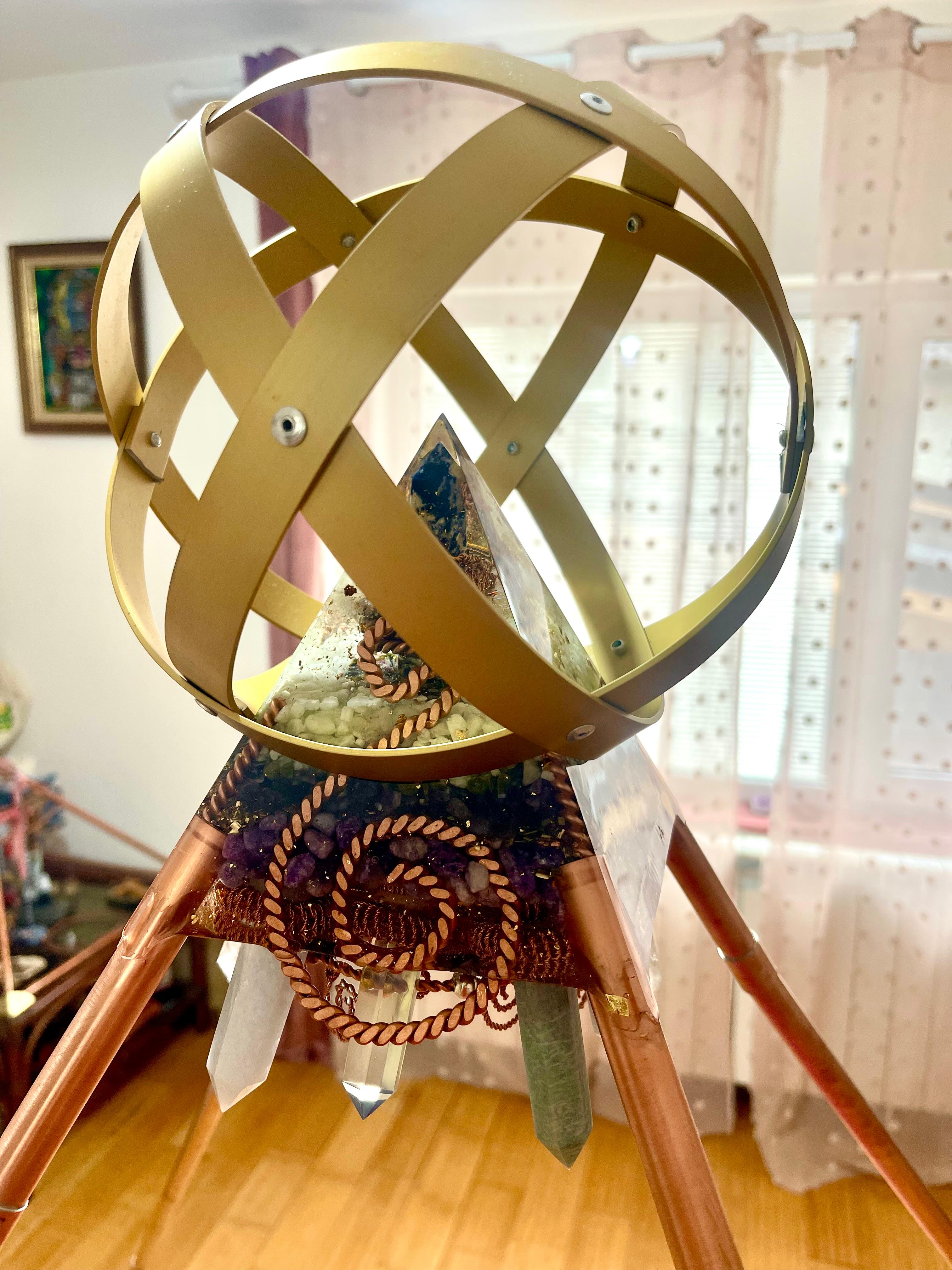 • Dispozitiv Orgon unic, cu țevi de cupru și cristale programate.