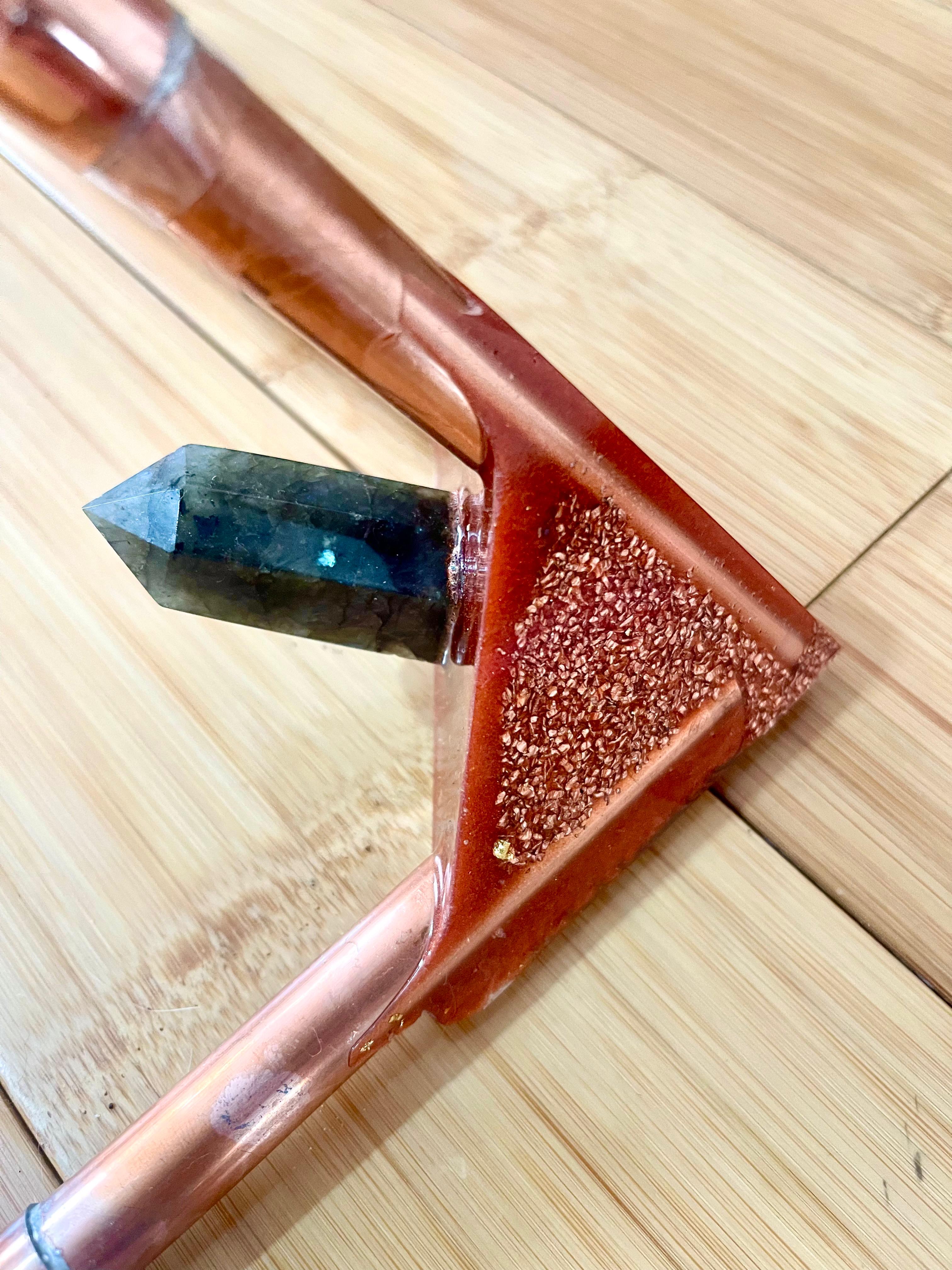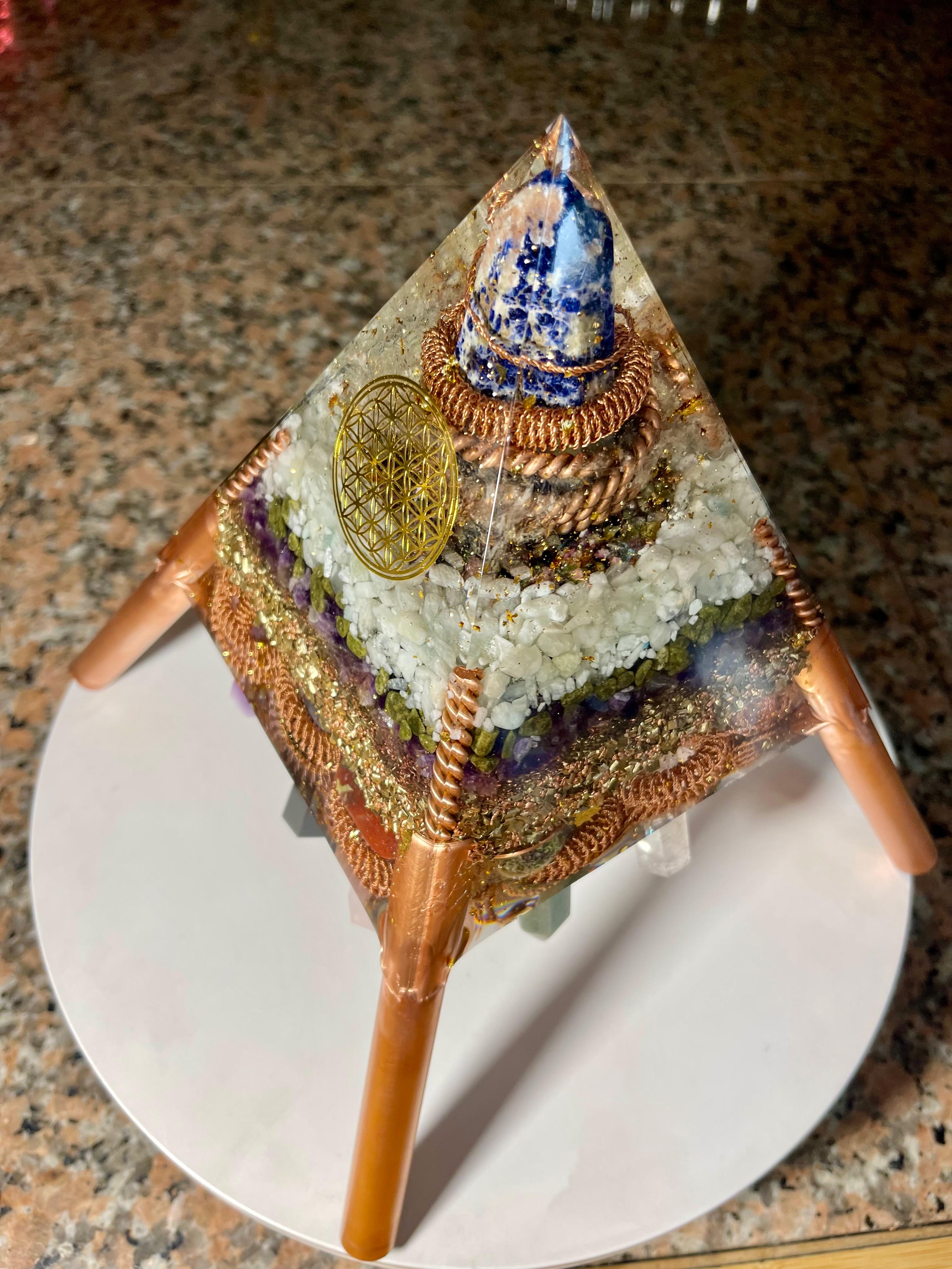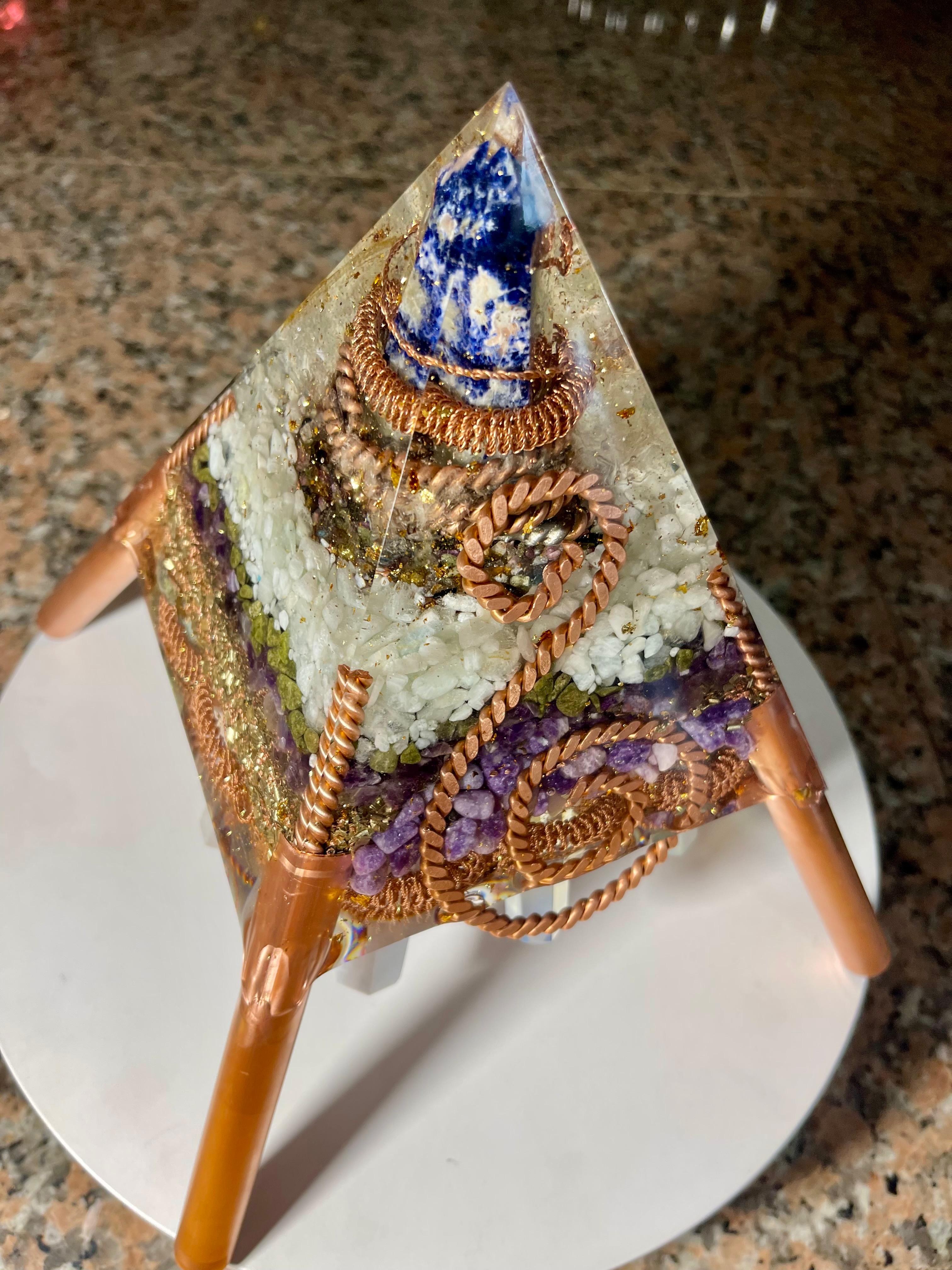 • Dispozitiv Orgon unic, cu țevi de cupru și cristale programate.