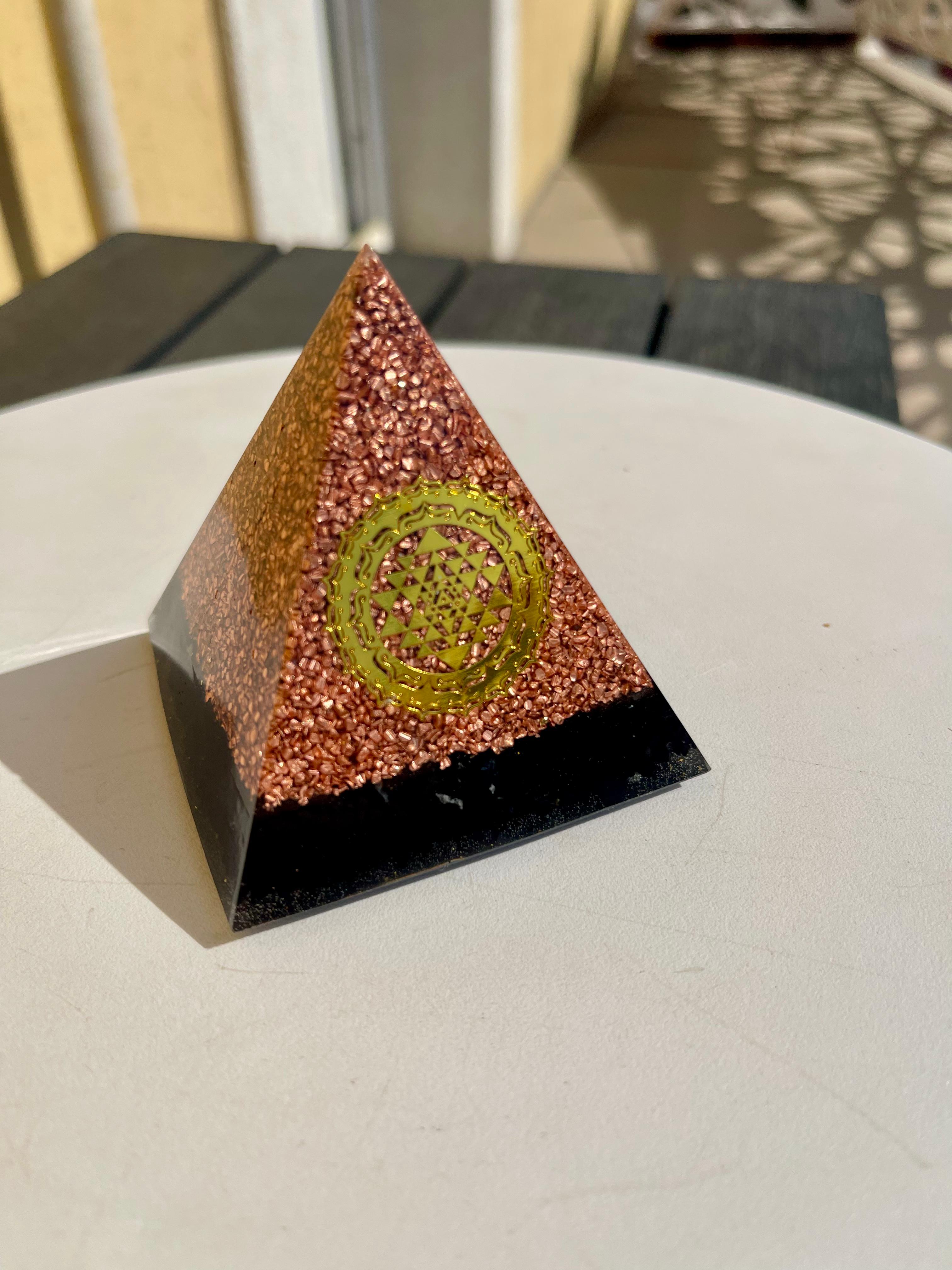 Piramidă orgonică mică (90% cupru, 10% shungit și turmalină) – un generator puternic de energie purificatoare.