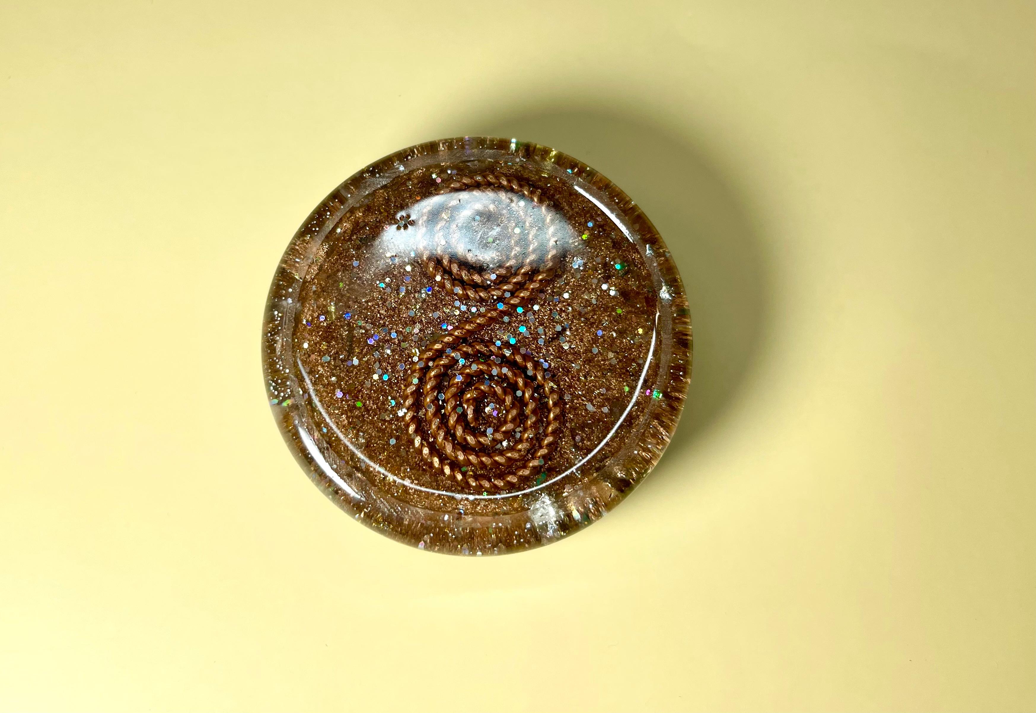 • 50% anorganic – cupru, pulberi metalice, cristale și inserții aurii care filtrează și amplifică fluxul energetic