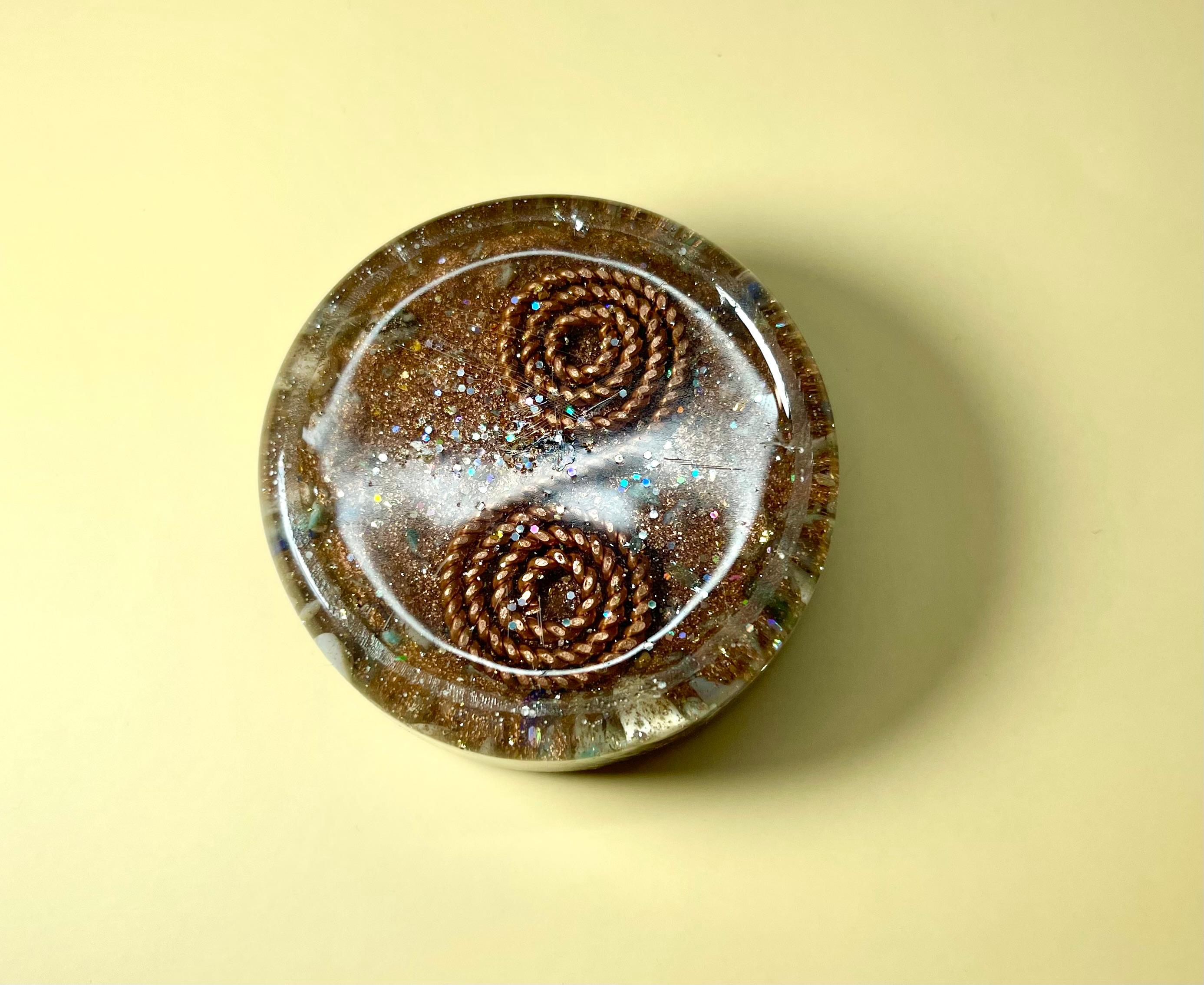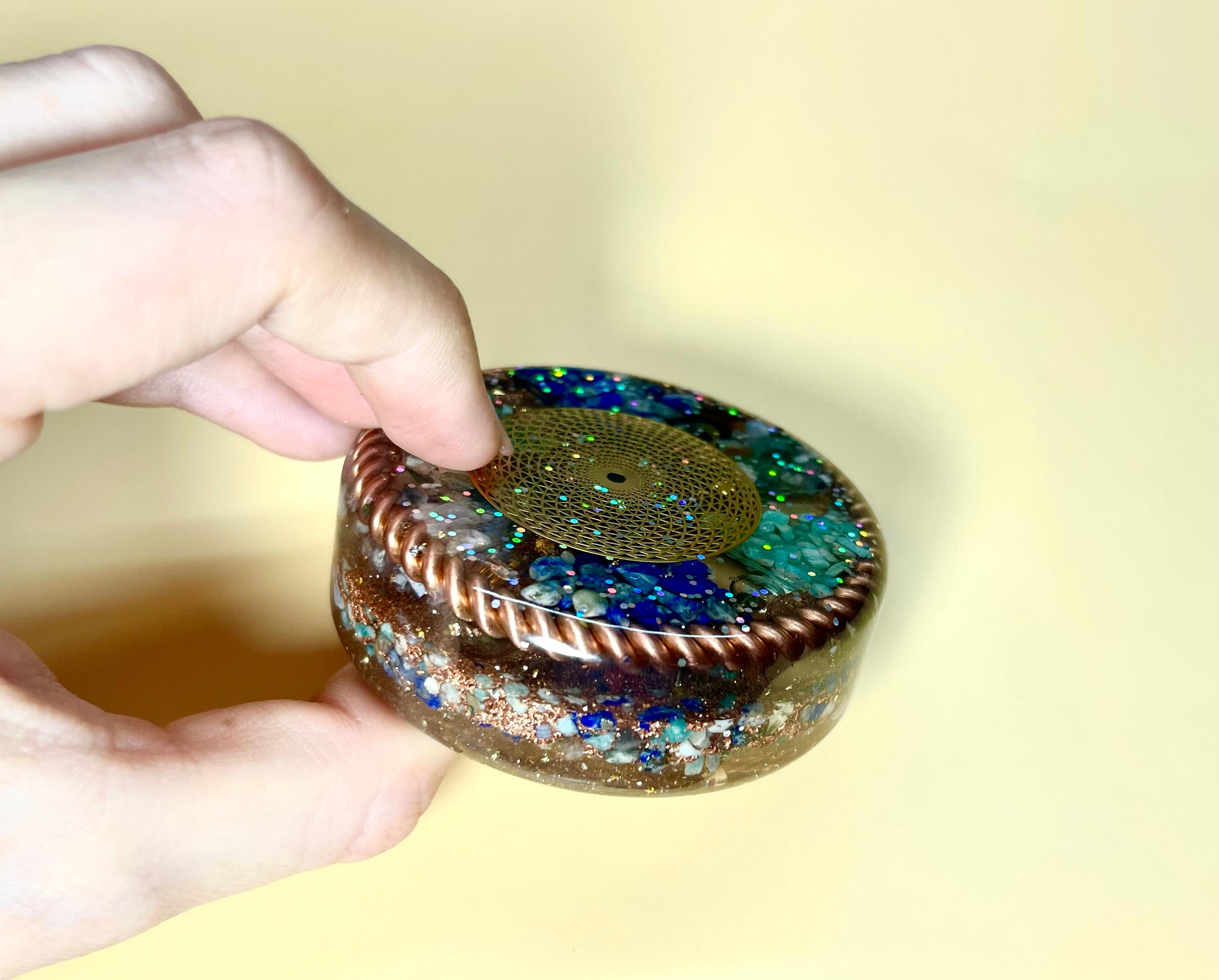 • 50% anorganic – cupru, pulberi metalice, cristale și inserții aurii care filtrează și amplifică fluxul energetic